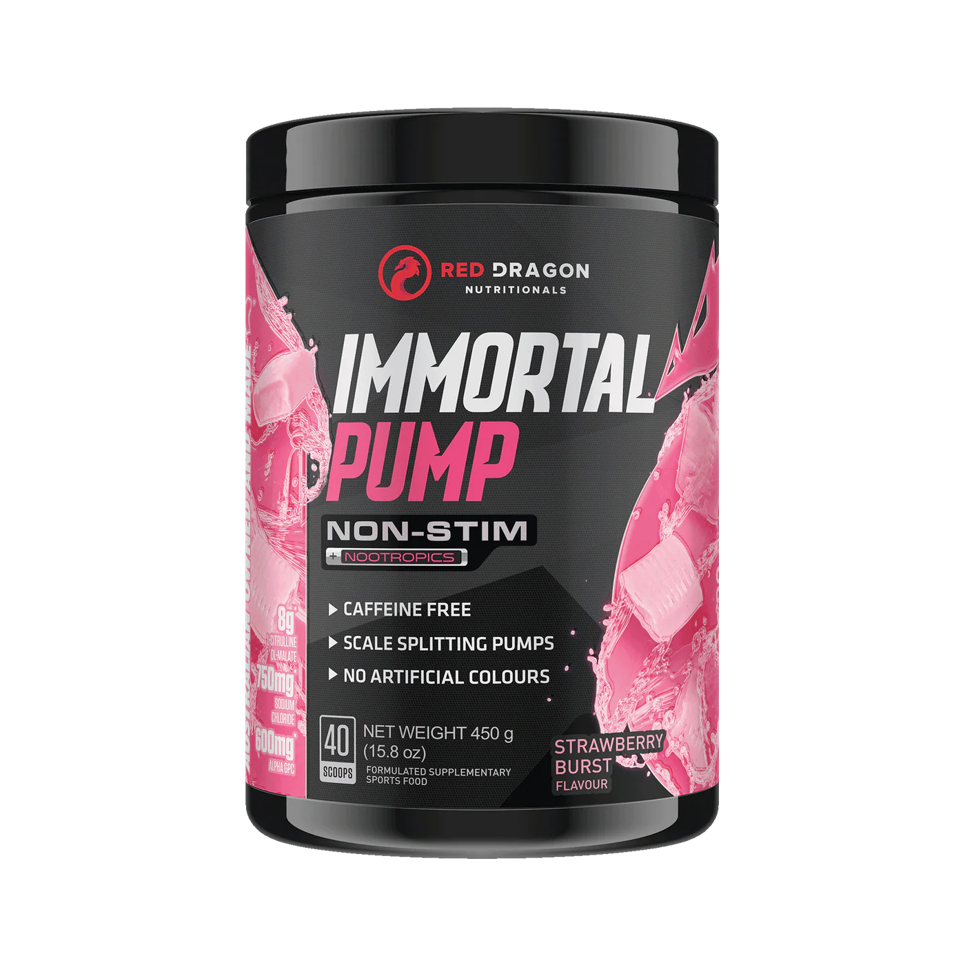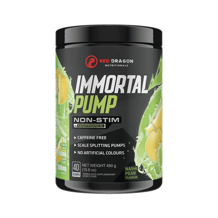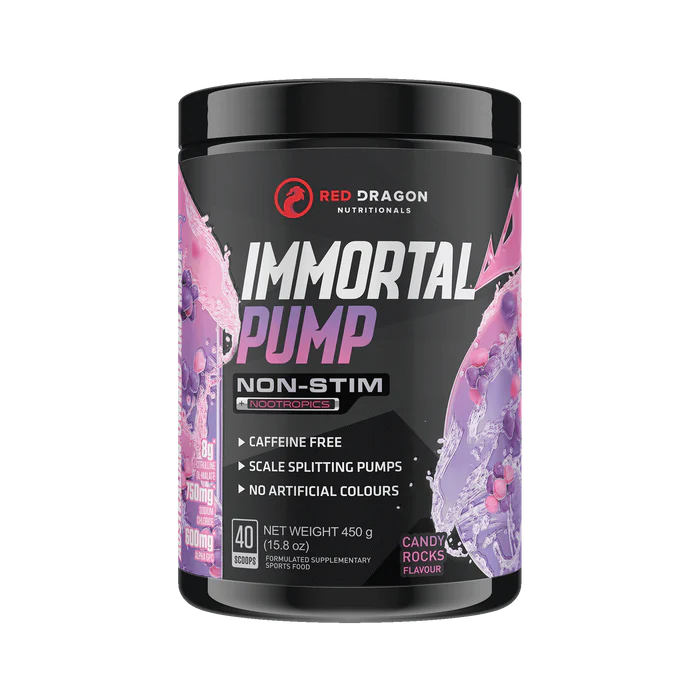 Red Dragon Immortal Pump is a non stimulant pre-workout crafted to deliver insane muscle pumps, razor sharp focus, and enhanced nutrient delivery, all while keeping your heart rate calm and your sleep undisturbed.